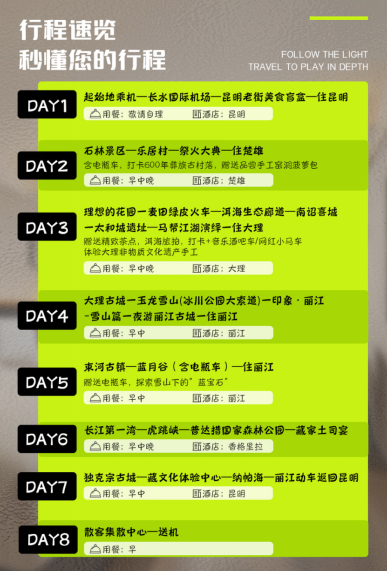 用餐安排:早餐酒店自助 中餐当地团队餐 晚餐大理特色赶马鸡