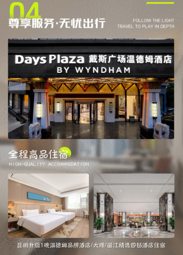 1.住宿:全程携程4钻精品轻奢酒店+1晚温德姆酒店+泸沽湖一晚特色客栈湖景房