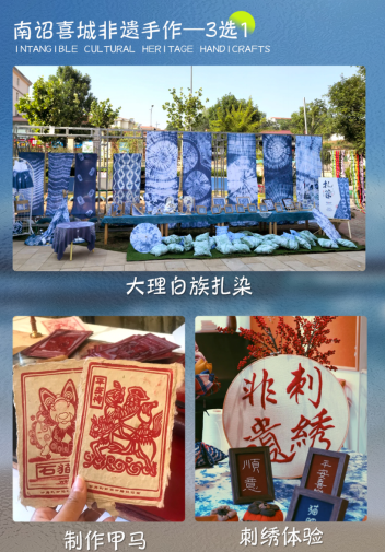 之后前往【南诏喜城】体验大理非物质文化遗产手工体验,这里有三方一照壁、四合五天井、六合同春、走马转角楼,可以说是喜洲片区最奢华的民居建筑群体,一步一景,每一景都是白族世代生活的审美和生活方式的展现今天有非遗传承人亲自指导完成以下体验哦!以下3个体验3选1,根据您的喜好自己选择体验!